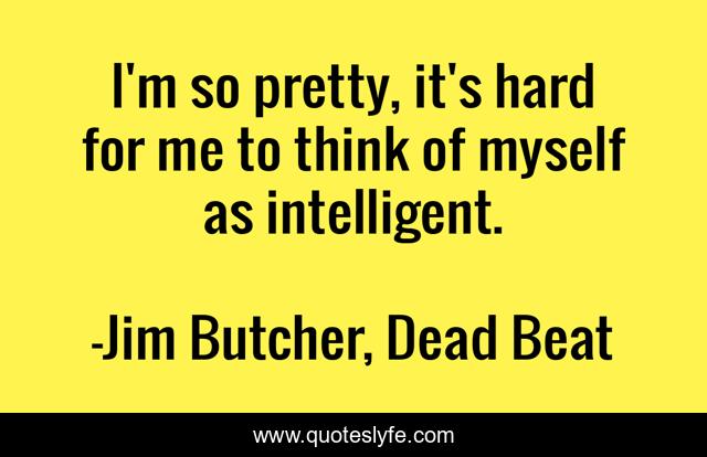 This page presents the quote "I'm so pretty, it's hard for me to think of myself as intelligent.". Author of this quote is Jim Butcher, Dead Beat. This quote is about thomas-raith, humor, vanity,.