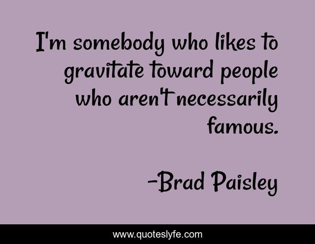 This page presents the quote "I'm somebody who likes to gravitate toward people who aren't necessarily famous.". Author of this quote is Brad Paisley. This quote is about toward, somebody, people,.