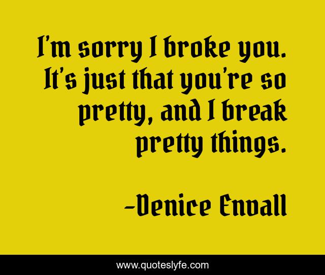 This page presents the quote "I’m sorry I broke you. It’s just that you’re so pretty, and I break pretty things.". Author of this quote is Denice Envall. This quote is about bittersweet, love, quotes, quote, breaking, broken, unrequited-love, breakup, affection,.
