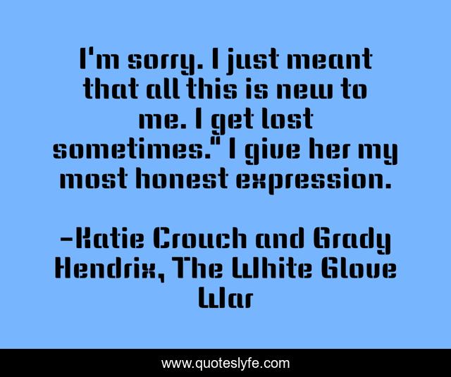 This page presents the quote "I'm sorry. I just meant that all this is new to me. I get lost sometimes." I give her my most honest expression.". Author of this quote is Katie Crouch and Grady Hendrix, The White Glove War. This quote is about romance, magic, suspense, darkness,.