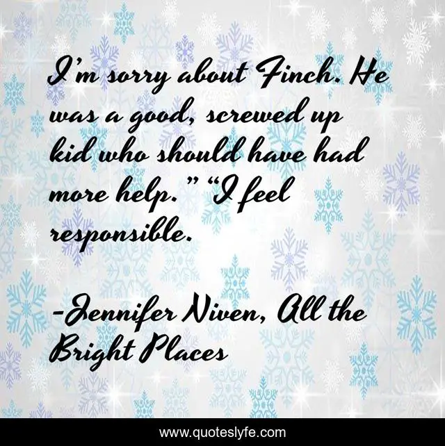 "Jennifer Niven, All the Bright Places Quotes." Quoteslyfe.com, 2025. Tue. 09 Dec. 2025. <https://www.quoteslyfe.com/quote/I-m-sorry-about-Finch-He-was-113836>.