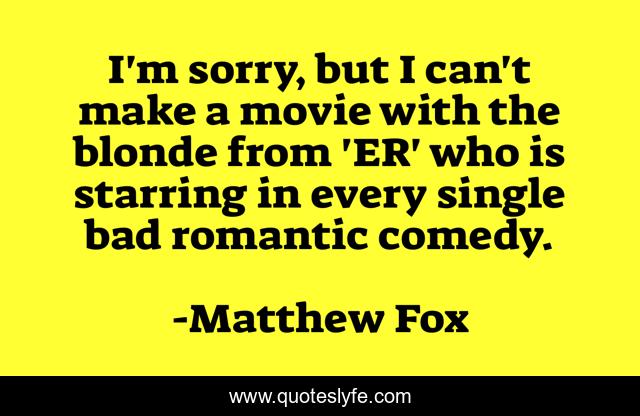 This page presents the quote "I'm sorry, but I can't make a movie with the blonde from 'ER' who is starring in every single bad romantic comedy.". Author of this quote is Matthew Fox. This quote is about sorry, comedy, blonde,.