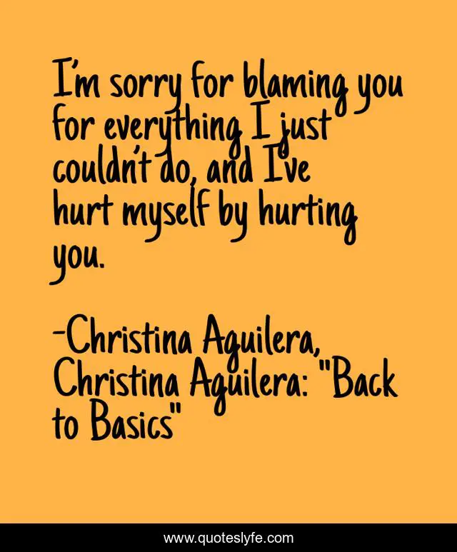 This page presents the quote "I’m sorry for blaming you for everything I just couldn’t do, and I’ve hurt myself by hurting you.". Author of this quote is Christina Aguilera, Christina Aguilera: "Back to Basics". This quote is about blame, hurt,.