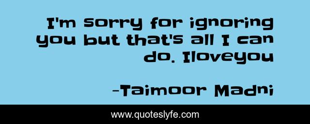 This page presents the quote "I'm sorry for ignoring you but that's all I can do. Iloveyou". Author of this quote is Taimoor Madni. This quote is about relationships, lonely, love, breakup, deep, ignoring, sadness, fight, affection,.
