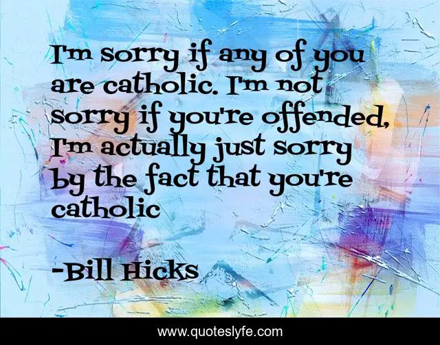 This page presents the quote "I'm sorry if any of you are catholic. I'm not sorry if you're offended, I'm actually just sorry by the fact that you're catholic". Author of this quote is Bill Hicks. .