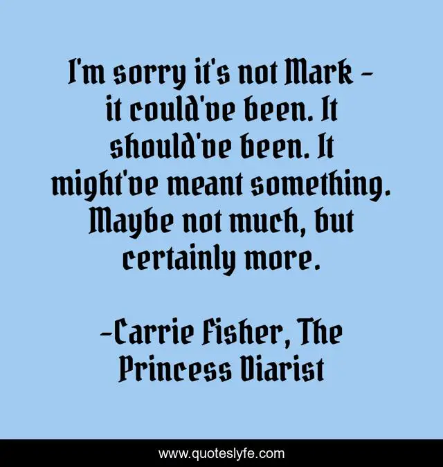 This page presents the quote "I'm sorry it's not Mark - it could've been. It should've been. It might've meant something. Maybe not much, but certainly more.". Author of this quote is Carrie Fisher, The Princess Diarist. This quote is about carrie-fisher, love, friendship, affection, mark-hamill,.