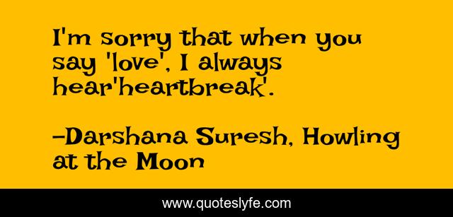 This page presents the quote "I'm sorry that when you say 'love', I always hear'heartbreak'.". Author of this quote is Darshana Suresh, Howling at the Moon. This quote is about heartbreak, love, affection,.