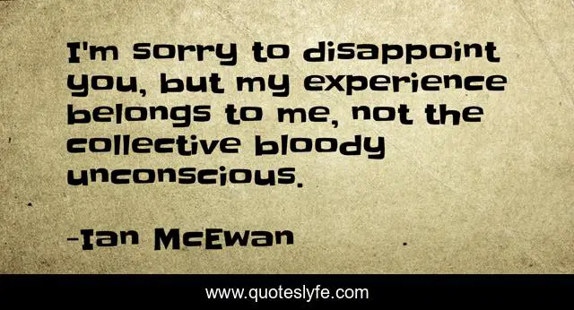 This page presents the quote "I'm sorry to disappoint you, but my experience belongs to me, not the collective bloody unconscious.". Author of this quote is Ian McEwan. This quote is about collective-unconscious, society, individual, experience,.