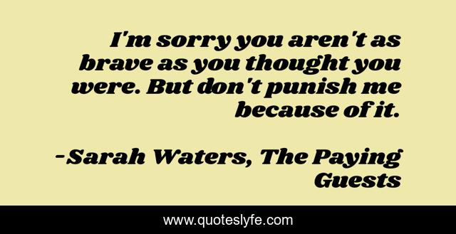 This page presents the quote "I'm sorry you aren't as brave as you thought you were. But don't punish me because of it.". Author of this quote is Sarah Waters, The Paying Guests. This quote is about judgement, bravery,.