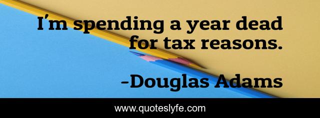 This page presents the quote "I'm spending a year dead for tax reasons.". Author of this quote is Douglas Adams. This quote is about tax, dead, year,.