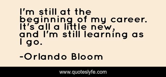 This page presents the quote "I'm still at the beginning of my career. It's all a little new, and I'm still learning as I go.". Author of this quote is Orlando Bloom. This quote is about career, new, beginning,.