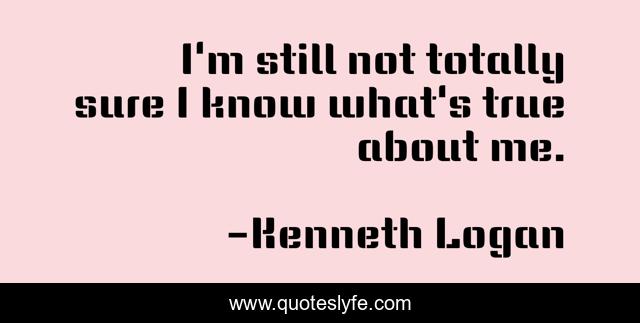 This page presents the quote "I'm still not totally sure I know what's true about me.". Author of this quote is Kenneth Logan. This quote is about coming-out, teen, high-school, ya, self-discovery, glbt, romance, lgbt, parents,.
