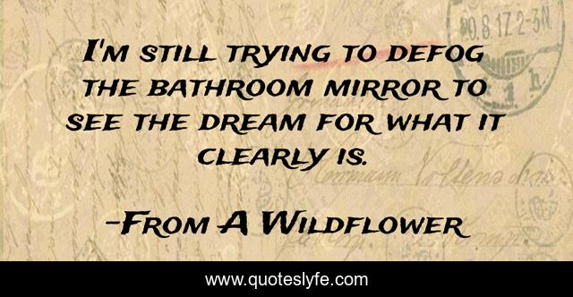 This page presents the quote "I'm still trying to defog the bathroom mirror to see the dream for what it clearly is.". Author of this quote is From A Wildflower. This quote is about imagination, be, dream, beauty, self-esteem,.