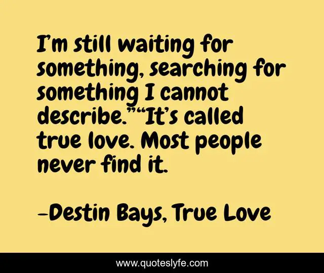 This page presents the quote "I’m still waiting for something, searching for something I cannot describe.”“It’s called true love. Most people never find it.". Author of this quote is Destin Bays, True Love. This quote is about best-romance-novels, true-love-in-time, contemporary-romance, historical-romance,.