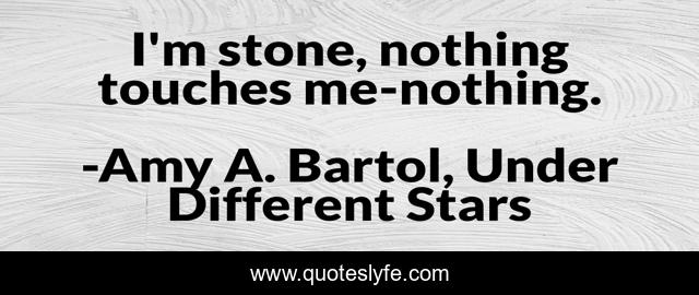 "Amy A. Bartol, Under Different Stars Quotes." Quoteslyfe.com, 2025. Mon. 08 Dec. 2025. <https://www.quoteslyfe.com/quote/I-m-stone-nothing-touches-me-nothing-104587>.