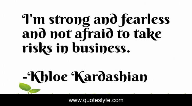 This page presents the quote "I'm strong and fearless and not afraid to take risks in business.". Author of this quote is Khloe Kardashian. This quote is about fearless, strong, risks,.