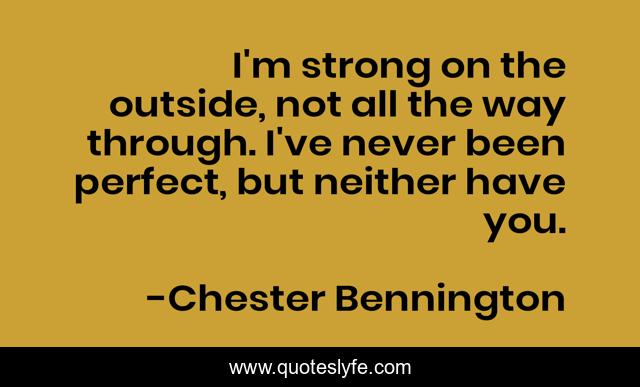 This page presents the quote "I'm strong on the outside, not all the way through. I've never been perfect, but neither have you.". Author of this quote is Chester Bennington. .