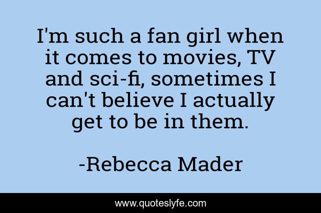This page presents the quote "I'm such a fan girl when it comes to movies, TV and sci-fi, sometimes I can't believe I actually get to be in them.". Author of this quote is Rebecca Mader. This quote is about girl, believe, sometimes,.