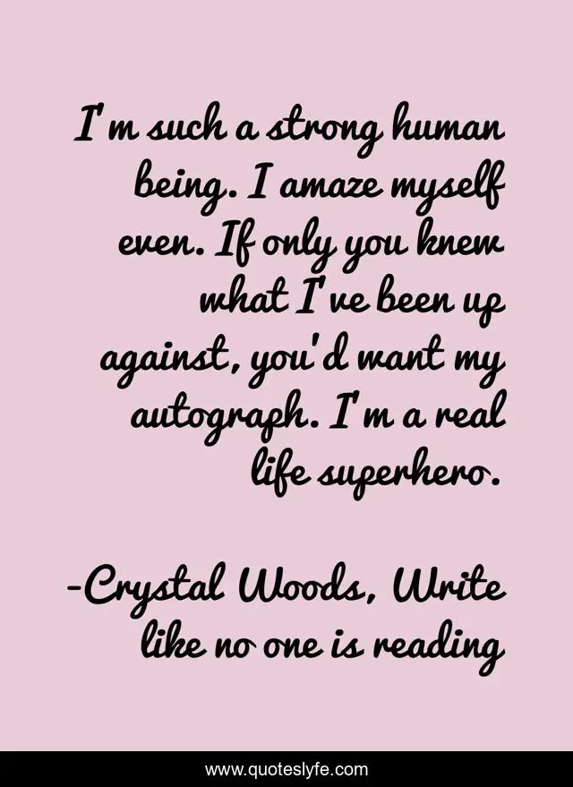 "Crystal Woods, Write like no one is reading Quotes." Quoteslyfe.com, 2025. Tue. 09 Dec. 2025. <https://www.quoteslyfe.com/quote/I-m-such-a-strong-human-being-88143>.