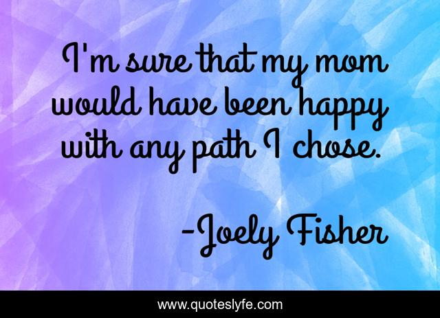 This page presents the quote "I'm sure that my mom would have been happy with any path I chose.". Author of this quote is Joely Fisher. This quote is about path, sure, happy,.