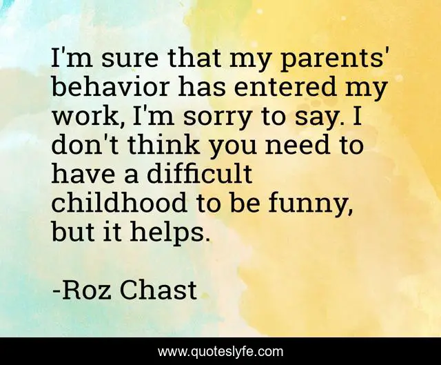 This page presents the quote "I'm sure that my parents' behavior has entered my work, I'm sorry to say. I don't think you need to have a difficult childhood to be funny, but it helps.". Author of this quote is Roz Chast. This quote is about work, parents, childhood,.