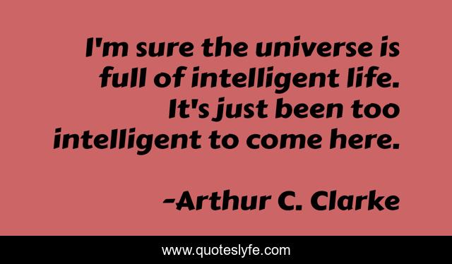 This page presents the quote "I'm sure the universe is full of intelligent life. It's just been too intelligent to come here.". Author of this quote is Arthur C. Clarke. This quote is about extraterrestrials, life, humor, science, universe, intelligent-life,.