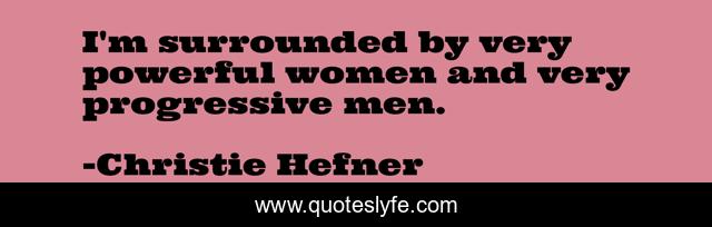 This page presents the quote "I'm surrounded by very powerful women and very progressive men.". Author of this quote is Christie Hefner. This quote is about men, powerful, progressive,.