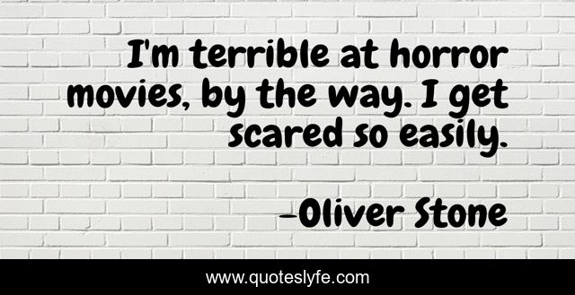 This page presents the quote "I'm terrible at horror movies, by the way. I get scared so easily.". Author of this quote is Oliver Stone. This quote is about horror, scared, way,.