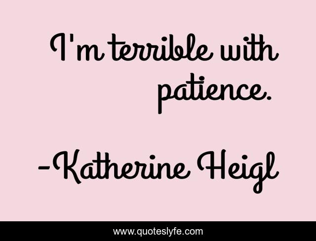 This page presents the quote "I'm terrible with patience.". Author of this quote is Katherine Heigl. .