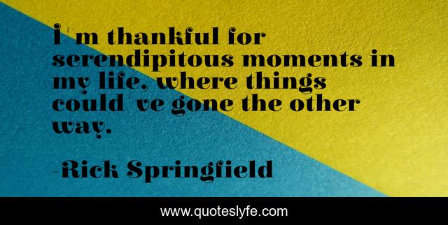 This page presents the quote "I'm thankful for serendipitous moments in my life, where things could've gone the other way.". Author of this quote is Rick Springfield. This quote is about moments, life, my life,.