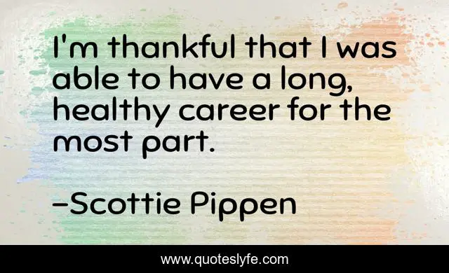 This page presents the quote "I'm thankful that I was able to have a long, healthy career for the most part.". Author of this quote is Scottie Pippen. This quote is about career, healthy, long,.
