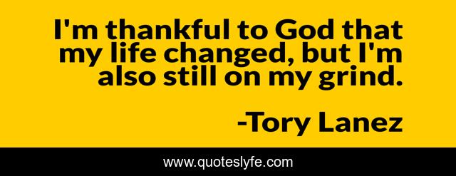 This page presents the quote "I'm thankful to God that my life changed, but I'm also still on my grind.". Author of this quote is Tory Lanez. This quote is about god, life, my life,.
