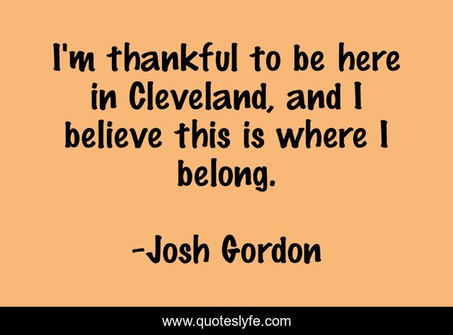 This page presents the quote "I'm thankful to be here in Cleveland, and I believe this is where I belong.". Author of this quote is Josh Gordon. This quote is about i believe, believe, here,.
