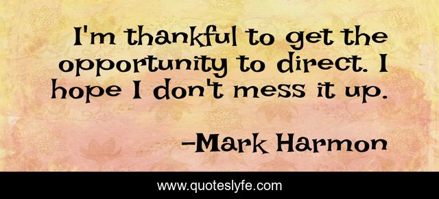 This page presents the quote "I'm thankful to get the opportunity to direct. I hope I don't mess it up.". Author of this quote is Mark Harmon. This quote is about opportunity, up, hope,.