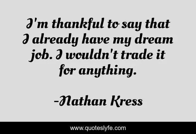 This page presents the quote "I'm thankful to say that I already have my dream job. I wouldn't trade it for anything.". Author of this quote is Nathan Kress. This quote is about job, dream,.