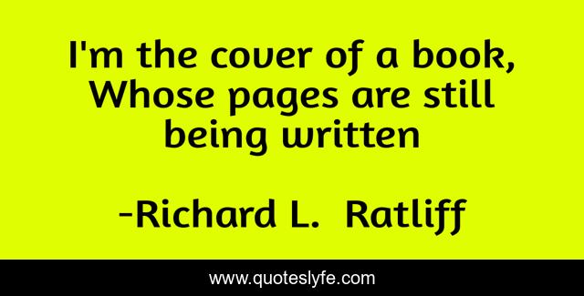 This page presents the quote "I'm the cover of a book, Whose pages are still being written". Author of this quote is Richard L. Ratliff. This quote is about the-future, life, philosophy, life-s-experience, life-story, life-philosophy, life-and-living, pages,.