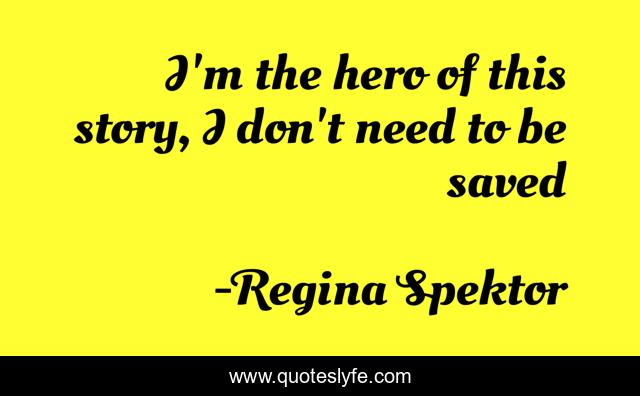This page presents the quote "I'm the hero of this story, I don't need to be saved". Author of this quote is Regina Spektor. This quote is about strong, hero, confidentiality,.