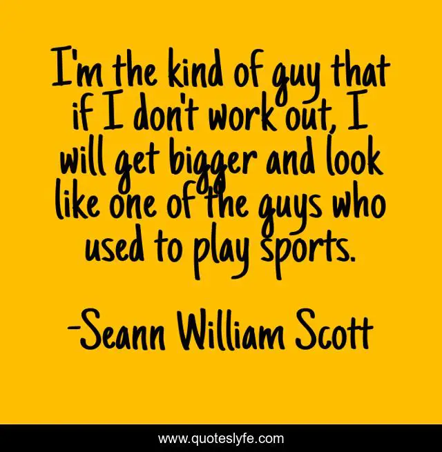 This page presents the quote "I'm the kind of guy that if I don't work out, I will get bigger and look like one of the guys who used to play sports.". Author of this quote is Seann William Scott. This quote is about play, work, look,.