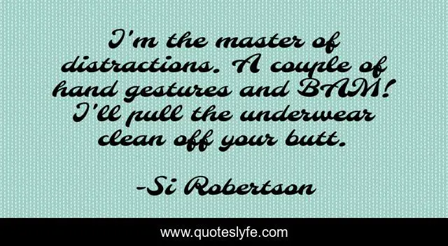 "Si Robertson Quotes." Quoteslyfe.com, 2025. Mon. 08 Dec. 2025. <https://www.quoteslyfe.com/quote/I-m-the-master-of-distractions-A-258566>.