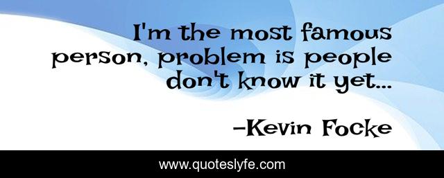 This page presents the quote "I'm the most famous person, problem is people don't know it yet…". Author of this quote is Kevin Focke. This quote is about joke, celebrity, humor, fame,.