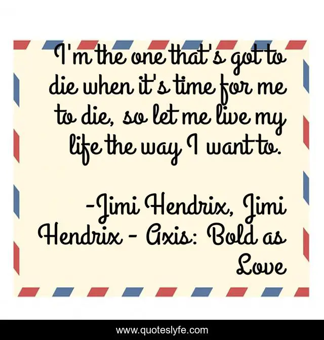 This page presents the quote "I'm the one that's got to die when it's time for me to die, so let me live my life the way I want to.". Author of this quote is Jimi Hendrix, Jimi Hendrix - Axis: Bold as Love. This quote is about life, death,.