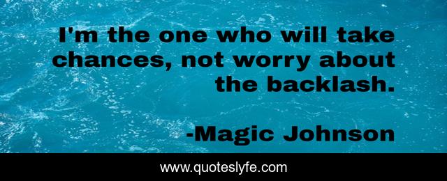 This page presents the quote "I'm the one who will take chances, not worry about the backlash.". Author of this quote is Magic Johnson. This quote is about chances, worry,.