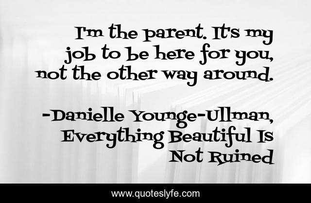 This page presents the quote "I'm the parent. It's my job to be here for you, not the other way around.". Author of this quote is Danielle Younge-Ullman, Everything Beautiful Is Not Ruined. This quote is about parenting, good-parent, validation,.