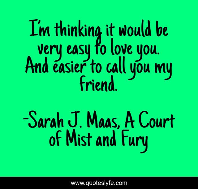 This page presents the quote "I’m thinking it would be very easy to love you. And easier to call you my friend.". Author of this quote is Sarah J. Maas, A Court of Mist and Fury. This quote is about true-love, feyre, friendship, rhysand,.