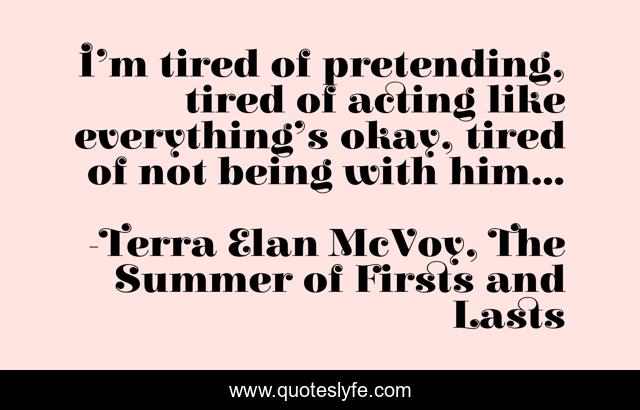 "Terra Elan McVoy, The Summer of Firsts and Lasts Quotes." Quoteslyfe.com, 2025. Fri. 05 Dec. 2025. <https://www.quoteslyfe.com/quote/I-m-tired-of-pretending-tired-of-202239>.
