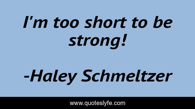"Haley Schmeltzer Quotes." Quoteslyfe.com, 2025. Fri. 05 Dec. 2025. <https://www.quoteslyfe.com/quote/I-m-too-short-to-be-strong-246584>.