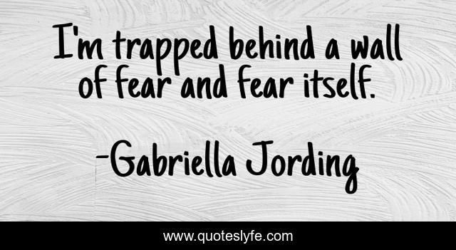 This page presents the quote "I'm trapped behind a wall of fear and fear itself.". Author of this quote is Gabriella Jording. This quote is about conscience, anxiety, trapped, wall, scared, doubt, fear,.