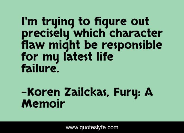 This page presents the quote "I'm trying to figure out precisely which character flaw might be responsible for my latest life failure.". Author of this quote is Koren Zailckas, Fury: A Memoir. .