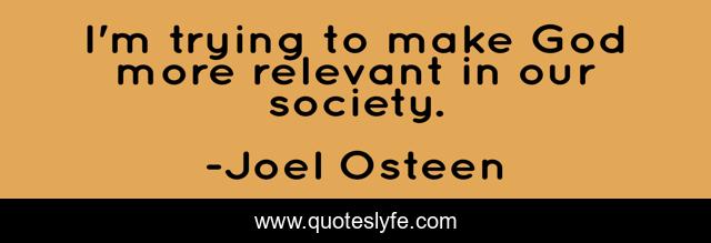 This page presents the quote "I'm trying to make God more relevant in our society.". Author of this quote is Joel Osteen. This quote is about god, trying, relevant,.