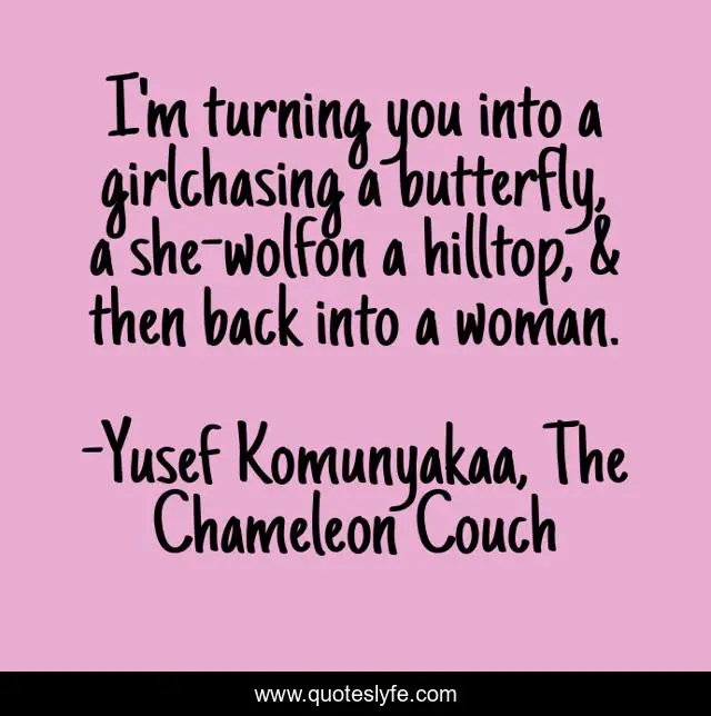 "Yusef Komunyakaa, The Chameleon Couch Quotes." Quoteslyfe.com, 2025. Fri. 05 Dec. 2025. <https://www.quoteslyfe.com/quote/I-m-turning-you-into-a-girlchasing-249650>.